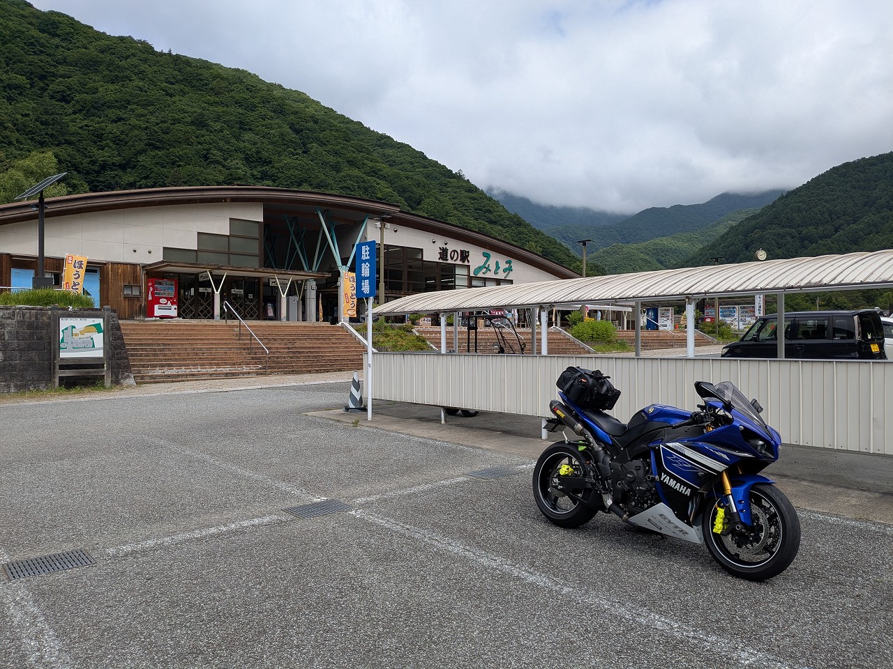写真は道の駅信濃路下條。屋根付きで最高ですね。